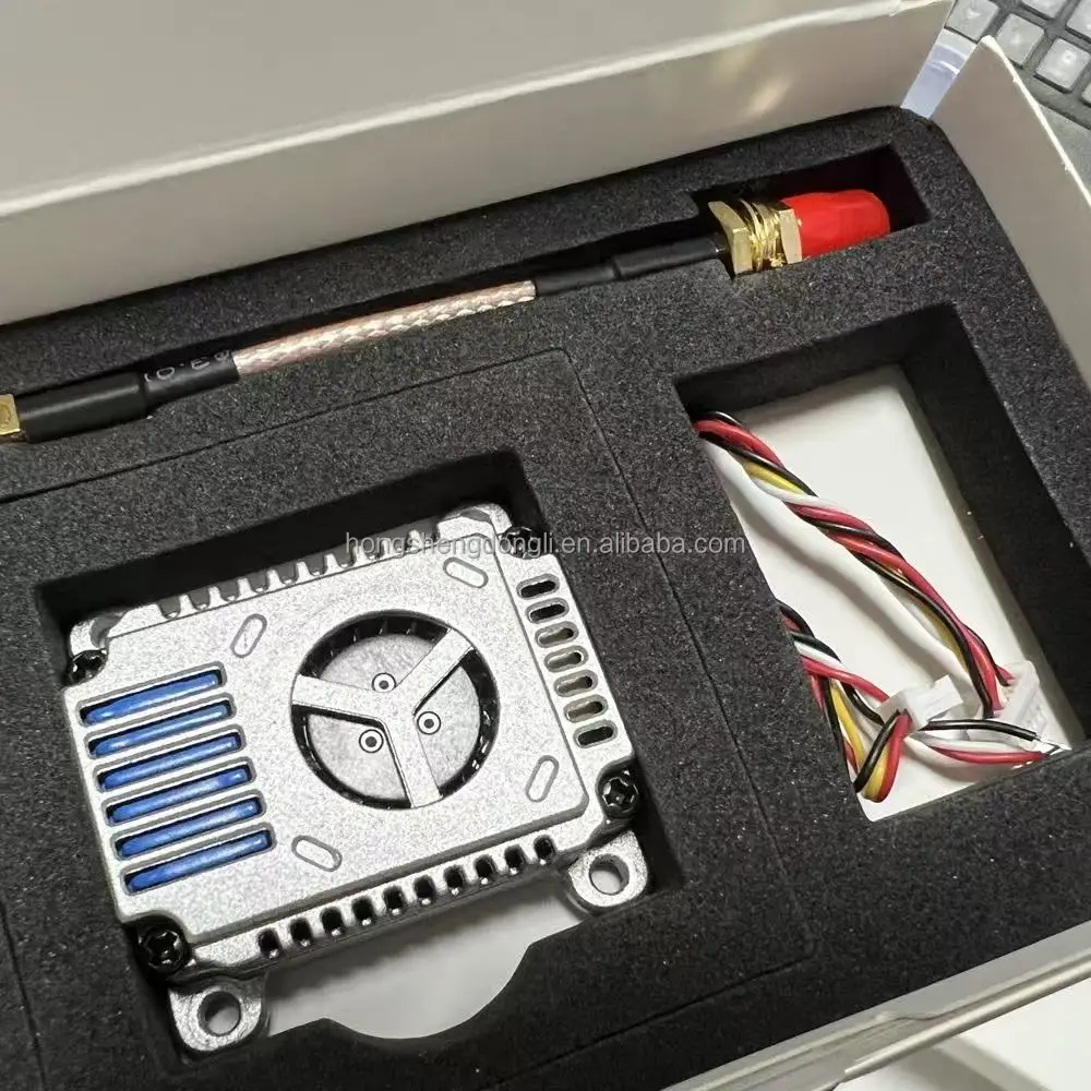 3.3G 10W VTX Transmitter – Professional FPV Video Transmission System This 3.3G 10W VTX transmitter delivers exceptional 10000mW power for long-range FPV flying. Featuring 16 channels and Smart Audio control, this high-power video transmitter ensures stable signal transmission even in challenging environments. The integrated fan cooling system maintains optimal operating temperature during extended use, while advanced anti-interference technology guarantees clear video quality. Perfect for FPV racing drones and long-range applications, this professional-grade transmitter offers precise channel selection and power adjustment capabilities. The compact design integrates seamlessly with most FPV setups, providing reliable performance for both competitive racing and recreational flying. With its robust construction and thermal management, this module meets the demands of serious FPV enthusiasts seeking uncompromising video transmission quality. Engineered for durability and consistent performance, this transmitter represents the pinnacle of FPV video technology. The combination of high output power and intelligent features makes it an ideal choice for pilots requiring reliable long-distance video links and crystal-clear imaging.