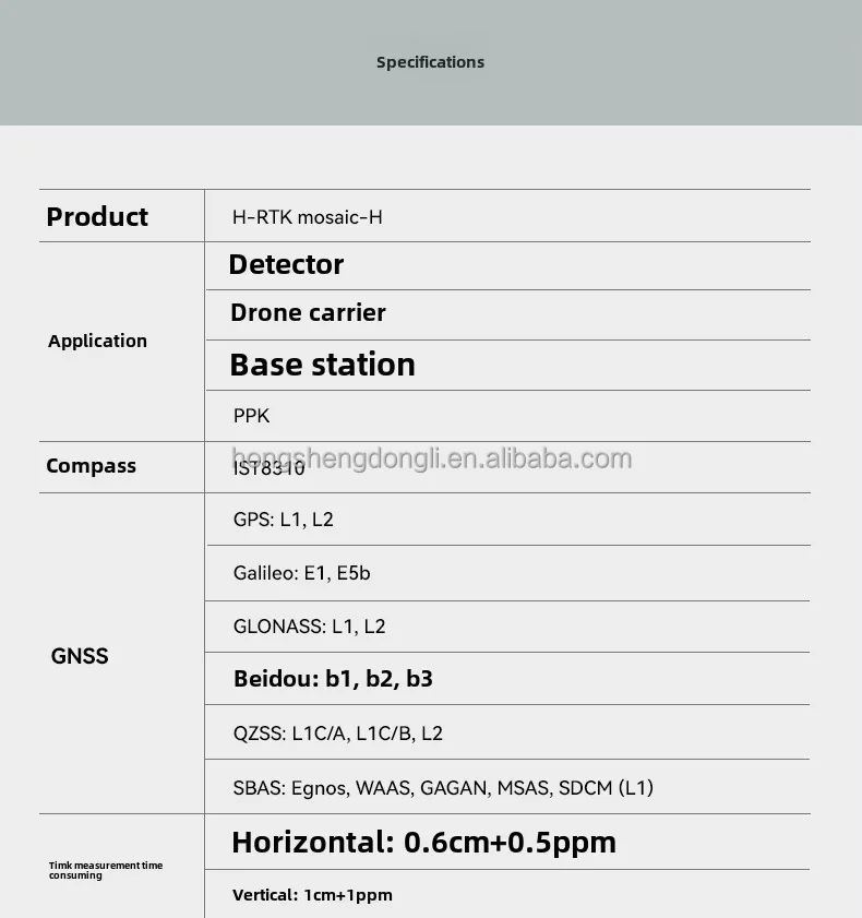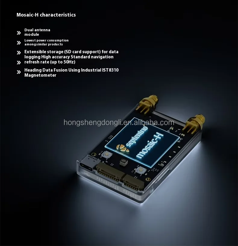 Holybro H-RTK Mosaic H – Professional GNSS Module for Precision Agriculture The Holybro H-RTK Mosaic H features dual-antenna heading technology with multi-constellation support, delivering centimeter-level accuracy for agricultural drones and surveying applications. This high-precision GNSS module integrates an IST8310 magnetometer and supports all major satellite systems, providing reliable positioning even in challenging environments. Engineered for professional drone operations, this RTK GPS module enables precise field mapping, crop monitoring, and automated spraying missions. The compact design withstands harsh agricultural conditions while maintaining stable satellite tracking and fast position convergence. Perfect for precision farming, land surveying, and infrastructure inspection requiring sub-meter accuracy. We offer volume pricing for agricultural service providers and OEM solutions for drone manufacturers. Our technical team provides comprehensive support for system integration and calibration. Contact us for bulk orders and customized configurations tailored to your specific agricultural drone requirements.