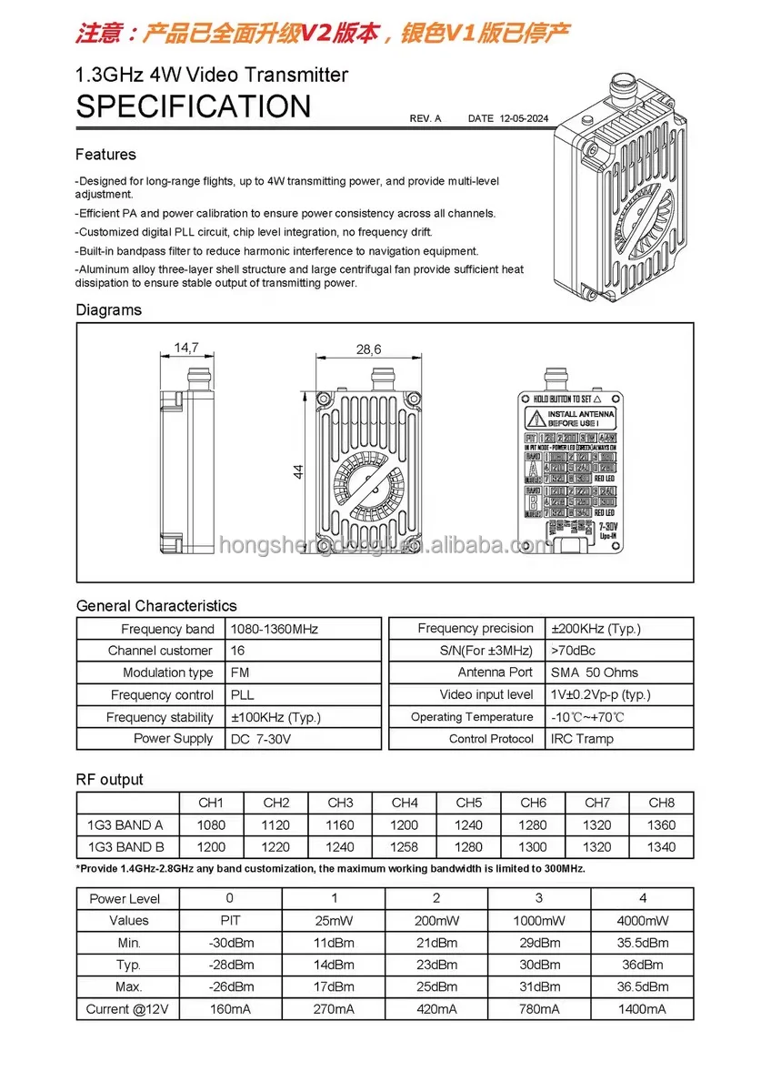 3.3 GHz / 1.3 GHz Dual-Band 4W VTX